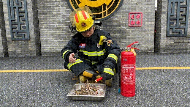 消防员点燃立香,当其充分燃烧后,将前端烧红香灰段剪下放在纸钱上,模拟风吹落香灰点燃附近可燃物。