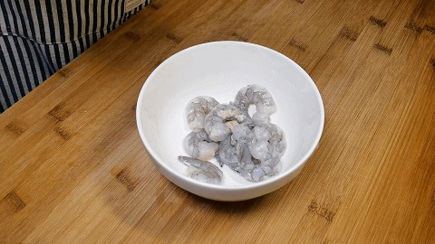1.准备几个大虾,去壳去虾线,取出虾仁放入碗中,加入1克料酒、1克食盐、1克胡椒粉,先把虾仁和调料抓拌均匀,可以使虾仁去腥增味。
