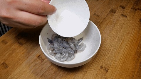 2.接着再加入5克淀粉抓拌均匀,然后腌制5分钟,淀粉可以锁住水分,使烹饪后的虾仁口感更鲜嫩。