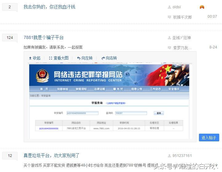 很多玩家都习惯在这个平台进行交易,但是近些年这个平台也出现 了而很多手游充值不到账或者是乱收手续费的现象。这类的事情在贴吧和评论中频繁出现,不知道7881是不是赚钱了,越来越不关心这类的事情,也没有客服去处理下。