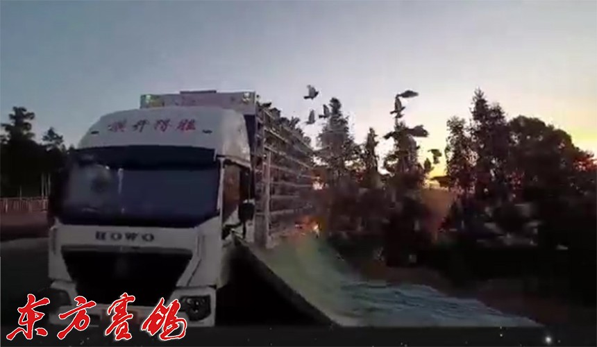 赛鸽车徐徐驶离公棚奔赴放飞地。