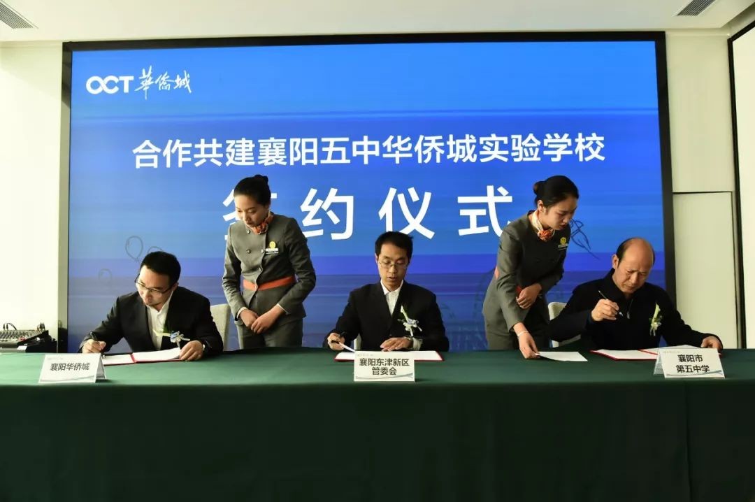 10月15日,在襄阳华侨城创展中心,襄阳东津新区(经开区)管委会、襄阳市第五中学与襄阳华侨城正式签署了《合作共建襄阳五中华侨城实验学校协议书》,协议规定,三方将在襄阳华侨城内合作共建襄阳五中华侨城实验学校。