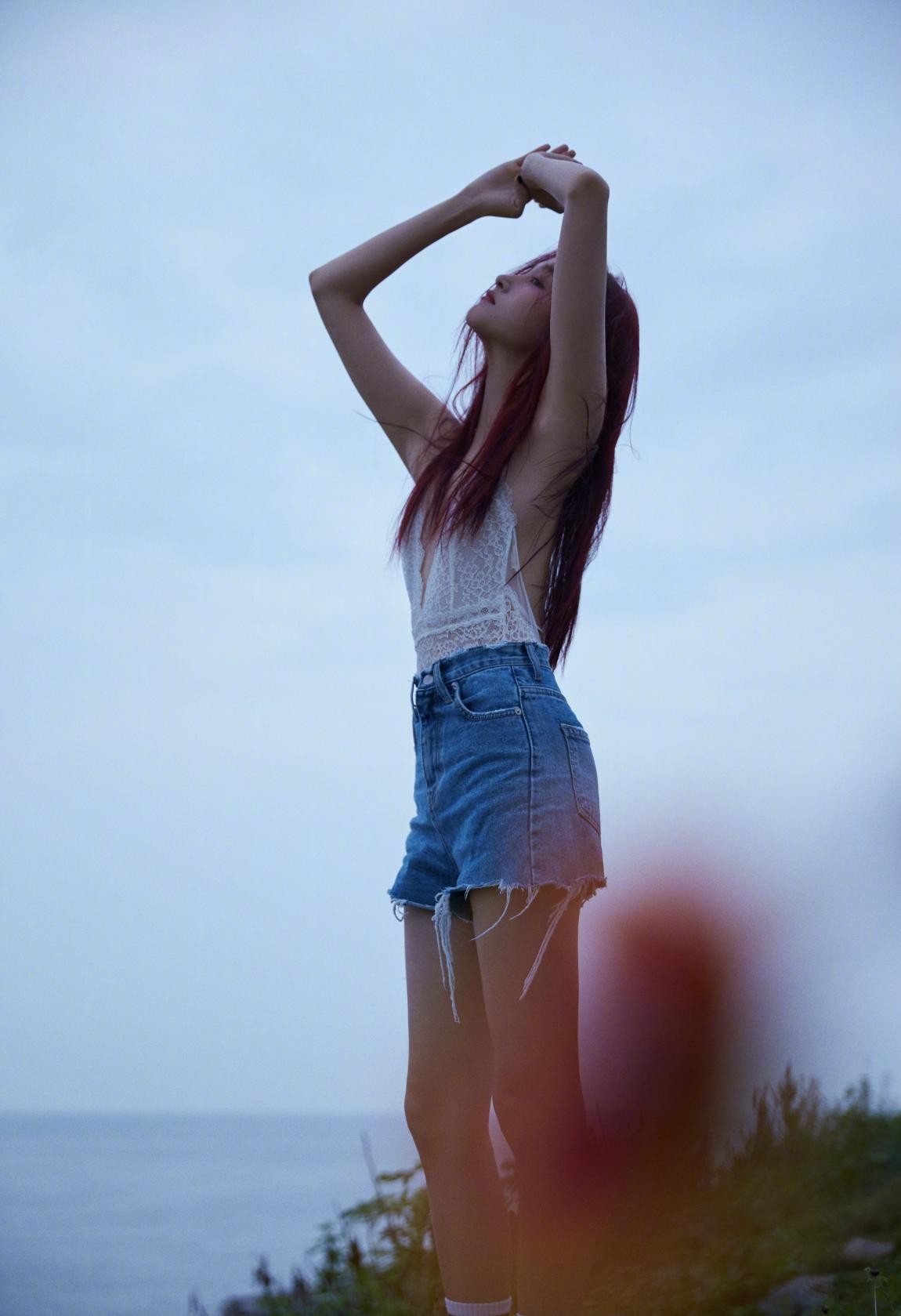 虽然她用秀发遮住自己半张脸,眼神比较冷酷,但整体氛围感还是很强。她的直角肩与大长腿在画面中格外抢镜,颇有超模拍摄写真的感觉。可见关晓彤私下对自己的身材管理很严格,才会有如此好的状态。