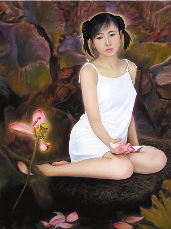 起初,李壮平只是怀着将屈原笔下的"山鬼"和郭沫若的"东方神女"结合在一起的想法,希望通过绘画表达人与自然的和谐之美。可选模特这事着实让他犯了难——一般选西方女性就显得与题材不符,选国内模特又担心会出现曲解或者道德争议。