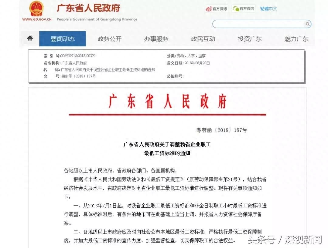 广东2018年最低工资标准发布,深圳省内最高!