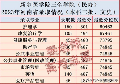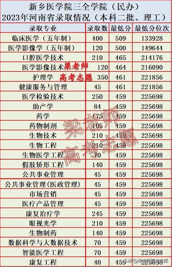 新乡医学院三全学院2023年在分省分专业录取分数汇总