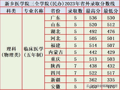 4、新乡医学院三全学院2023年在其他省份录取情况如下: