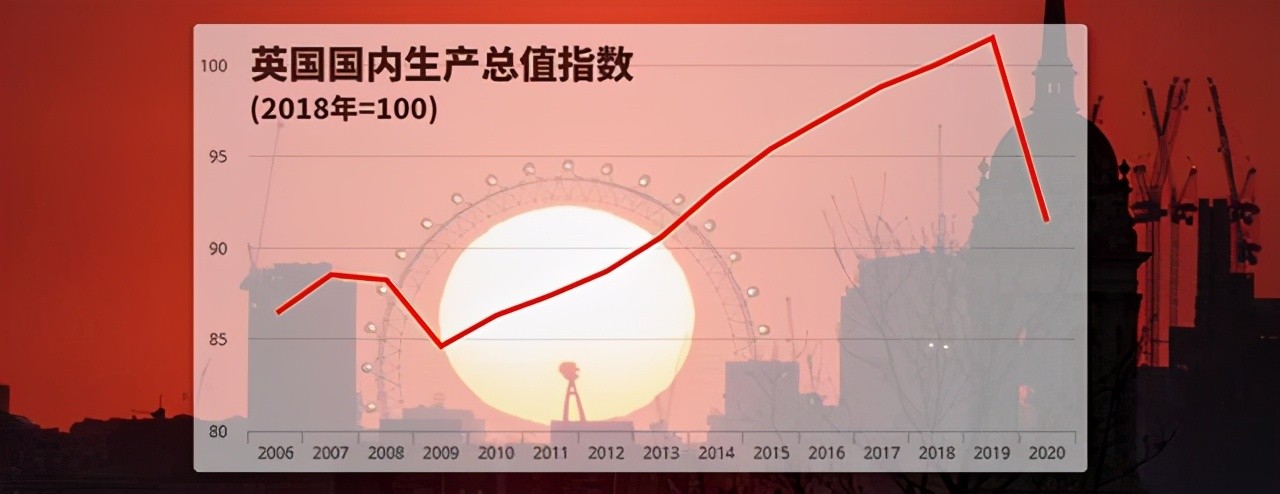 2020年,因疫情影响,英国GDP萎缩9.9%,也是自1709年英国遭遇“大霜冻”以来的最大跌幅,创下300年来最差纪录。彼时的英国还是个农业国,工业革命都还没发生。