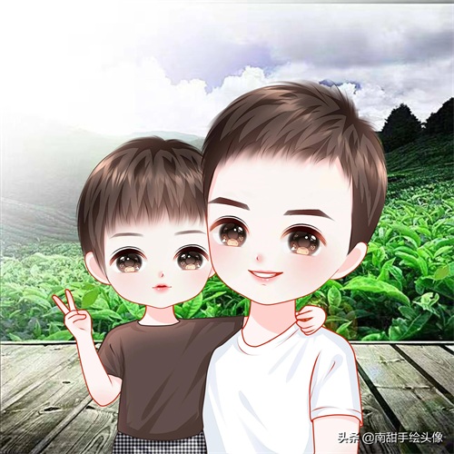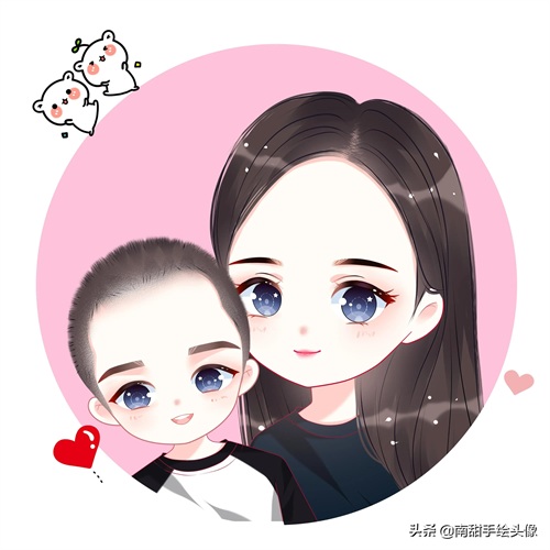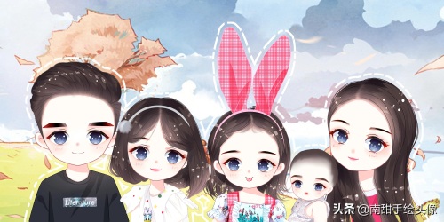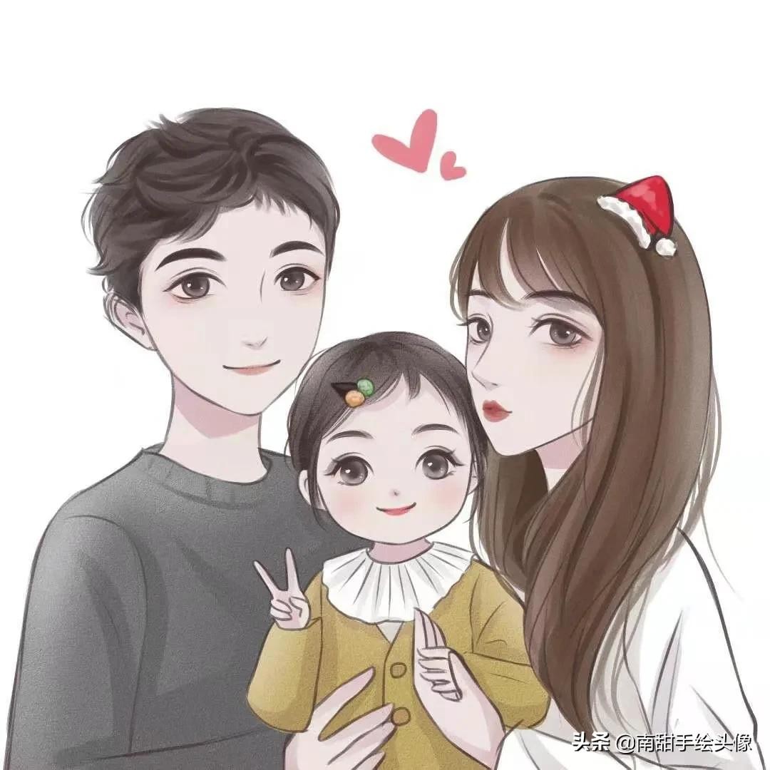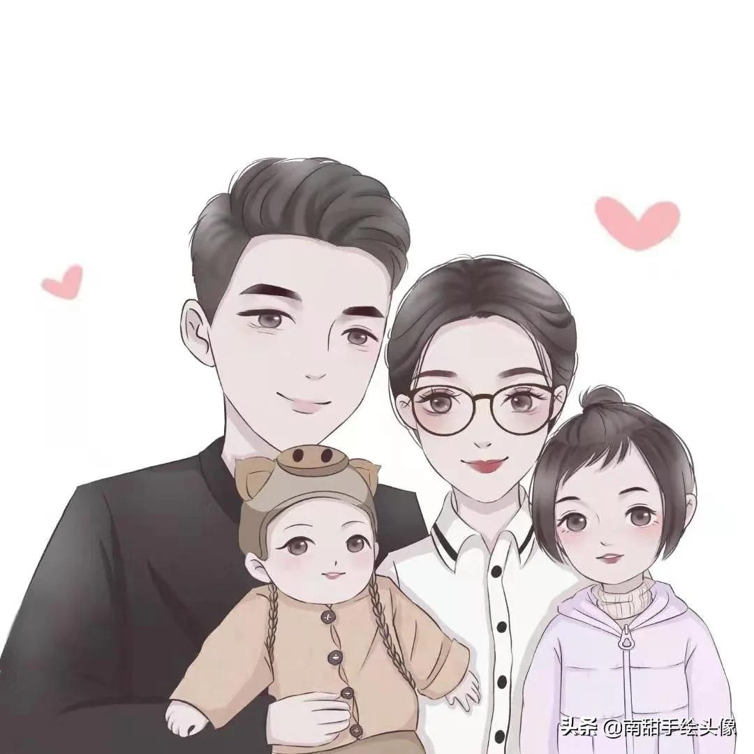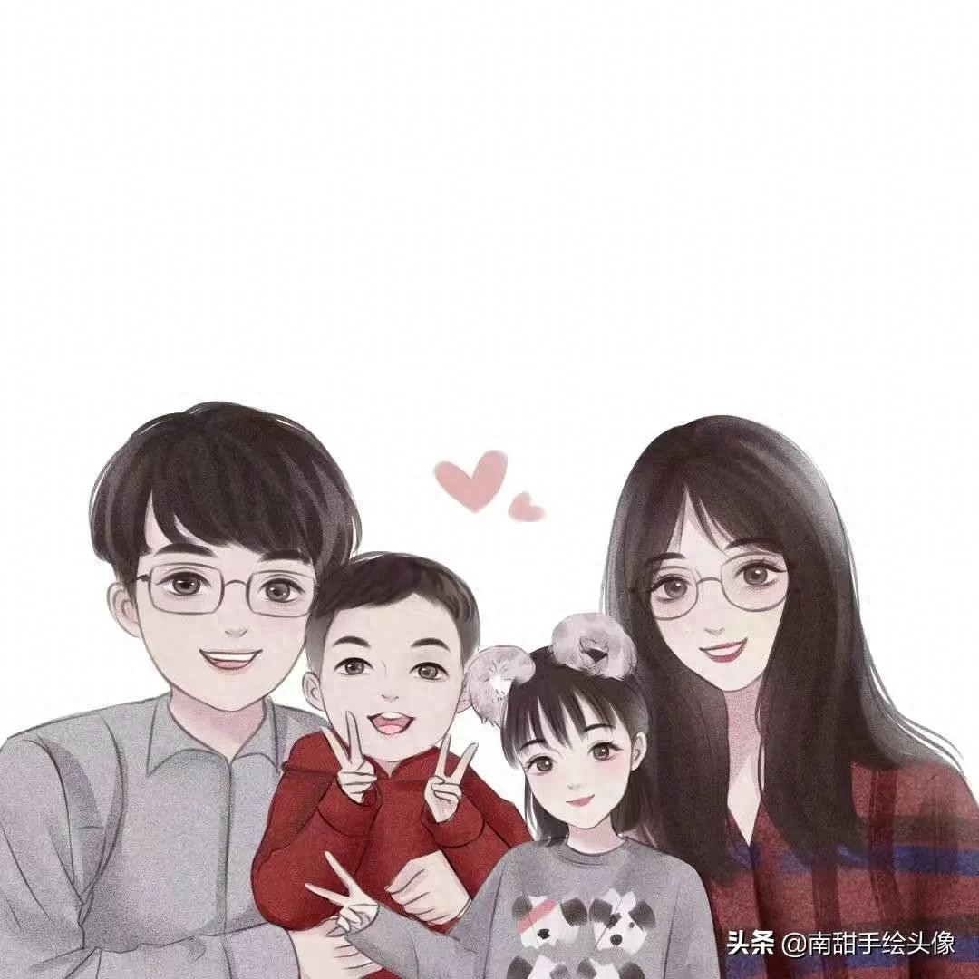 分享一组特别温馨可爱的全家福头像,一家四口,一家三口,亲子手绘头像,岁月静好,有你们在刚刚好。