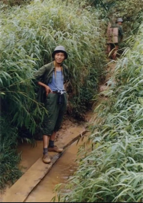 1985年对越自卫还击作战期间,他作为战地记者跟随军工部队战斗在第一线,身上被蚂蟥钻出许多血洞,脖子上挂着“光荣弹”随时准备牺牲。炮兵根据他拍摄的敌军阵地真实影像实施炮击,取得了意想不到的战果;部队首长参考他拍摄的“猫耳洞”战士烂裆写真照片,决定给第一线男兵每人发一条女兵裙子。
