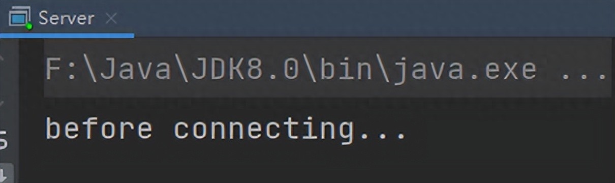 public class Client {public static void main(String[] args) {try (SocketChannel socketChannel = SocketChannel.open()) {// 建立连接socketChannel.connect(new InetSocketAddress("localhost", 8080));System.out.println("waiting...");} catch (IOException e) {e.printStackTrace();}}}运行结果