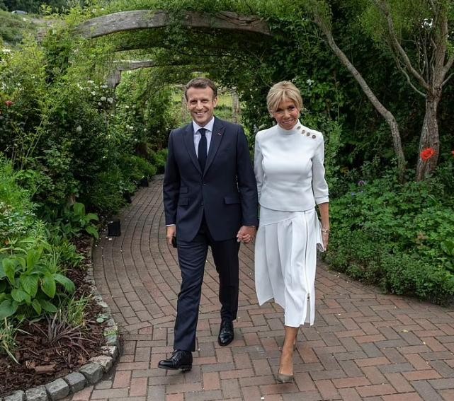 68岁马克龙夫人亮相G7,宝蓝裙全场最短,被43岁丈夫小心呵护
