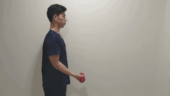 在上一组动作基础上的进阶锻炼,手握一瓶水,或哑铃,进行如下动作。10个为一组,每天3-5组。