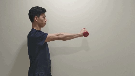 增加一个肘部屈伸的动作,进一步加强肘部肌力锻炼。10个为一组,每天3-5组。