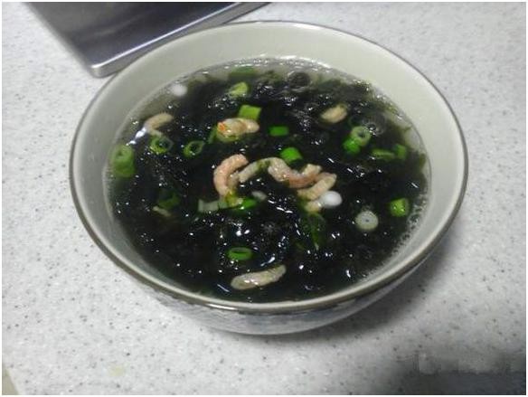 我们见到更多的跟紫菜一样,大概都在汤里。