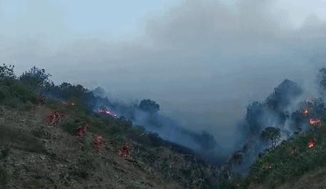 因为在火场周边的悬崖峭壁之间,滚滚浓烟依旧在不断升起,随时有可能成为新的着火点,如果到时候多方火势同时燃起,山火互相汇合后形成的破坏力让人不敢去想象。