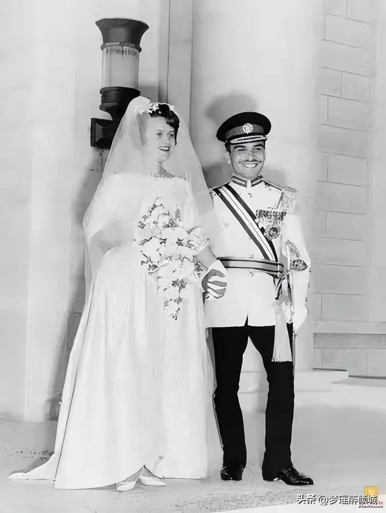 穆娜王妃和侯赛因国王结婚照。