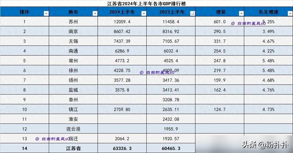这份上半年的江苏省各市GDP排行榜中,无锡、苏州和徐州表现最为优秀,不仅是因为他们的增速高于全省平均水平,更重要的是他们的GDP总量排名前列。