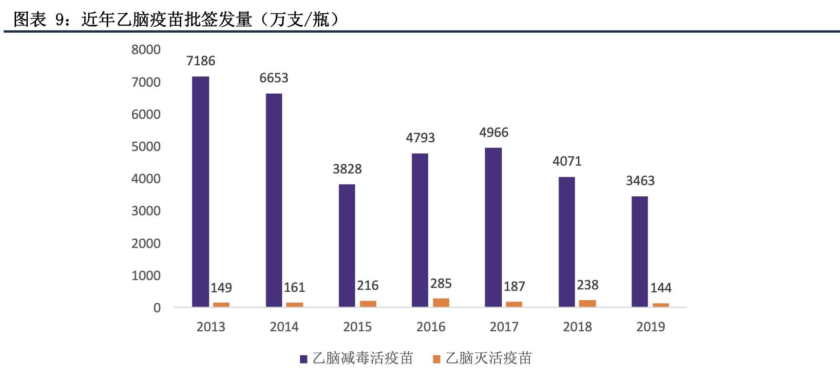 在我国乙脑疫苗市场上,一类疫苗——乙脑减毒活疫苗一直占据主要市场份额。近年来乙脑减毒活疫苗批签发量有下降趋势,年均批签发量在4000万支左右。公司产品为乙脑灭活疫苗,属于二类疫苗,于2008年上市,是目前国内市场上唯一在售的乙脑灭活疫苗。相较于减毒活疫苗,灭活疫苗更为稳定和安全,是乙脑减毒活疫苗的升级换代产品。目前公司的乙脑灭活疫苗的年均批签发量在200万支左右,招标价格在70元/支。总体来看,乙脑疫苗市场基本保持平稳,公司产品未来的增长在于对减毒活疫苗的替代,以获得更高的市场份额。