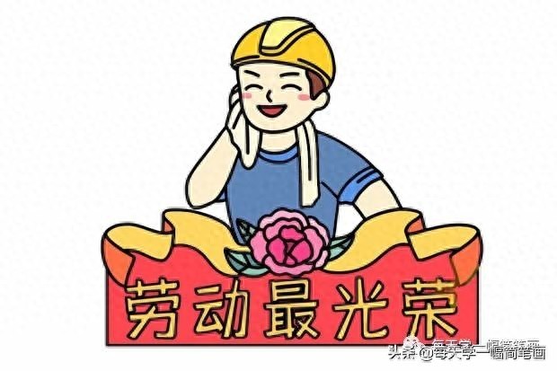 每天学一幅简笔画--五一劳动节劳动最光荣简笔画画法步骤图解大全