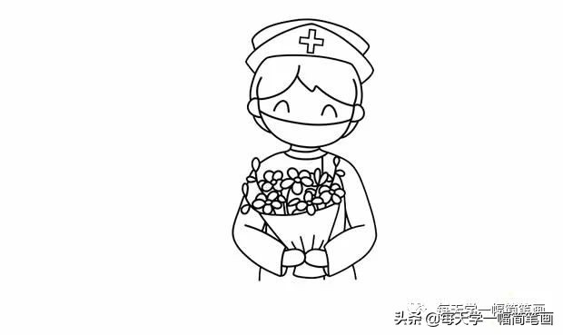 第二步:接着画出护士的身体和手里的鲜花。