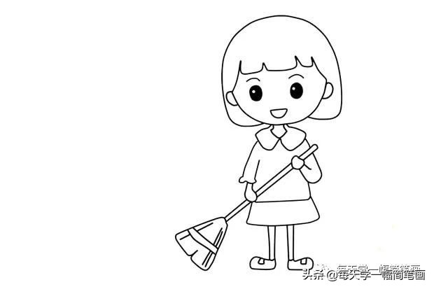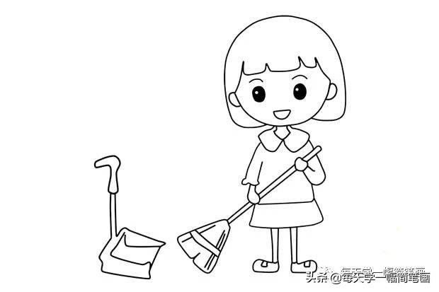五一节,人欢笑,我帮妈妈把地扫,我帮爷爷来拿包,大家一起来劳动,一定换来甜蜜笑。劳动节爱劳动的小女孩简笔画步骤图解教程,简单漂亮,快跟孩子一起画起来吧!