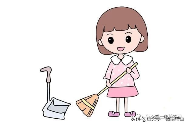 五一劳动节做家务打扫卫生的小女孩简笔画图片
