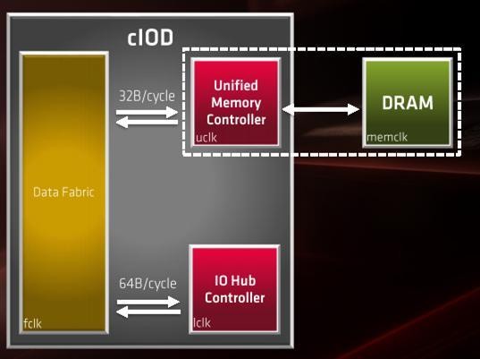 那么为什么内存超过3733MHz的体验反而变差了呢?这是因为Zen 2架构改进了内存控制器,加入了IF总线与内存的分频机制,当内存频率超过3733MHz时(以AMD PPT为例,实际中有差异),系统就会自动切换到2:1分频模式,这样子内存频率不会受IF总线限制,可以获得更高的内存带宽,但是采用2:1分频会带来内存延时增加的问题。