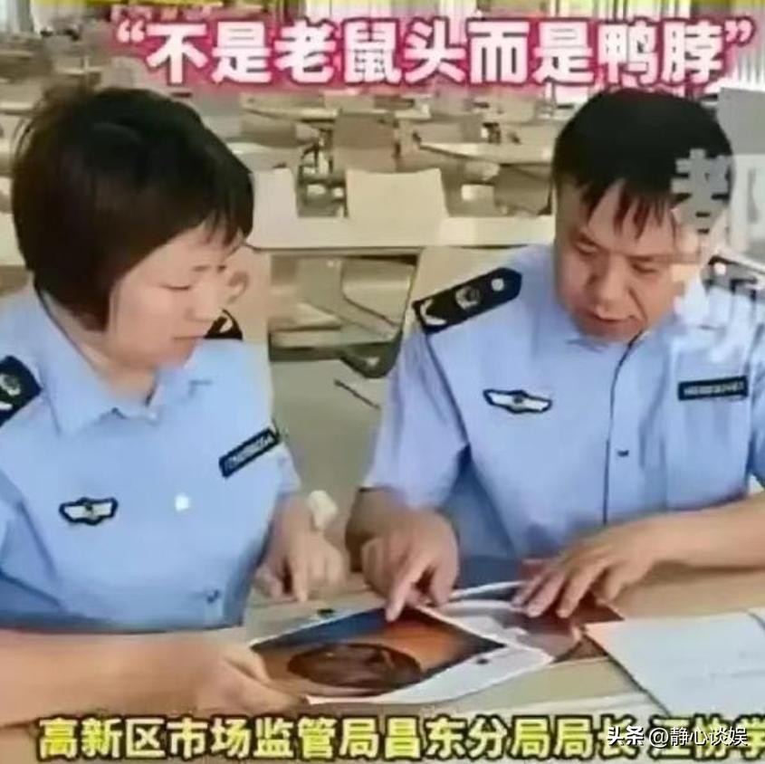 在接受记者访问的时候,语气坚定、言之凿凿的表示“这异物确实是鸭脖,而不是鼠头!”