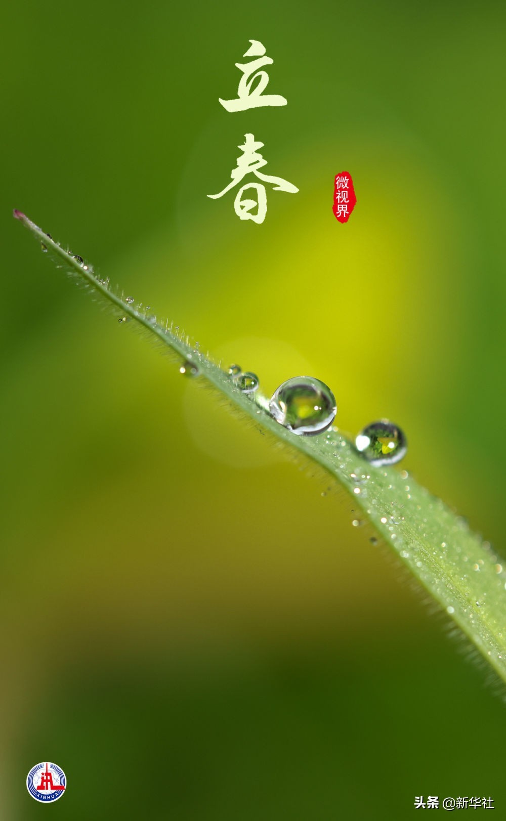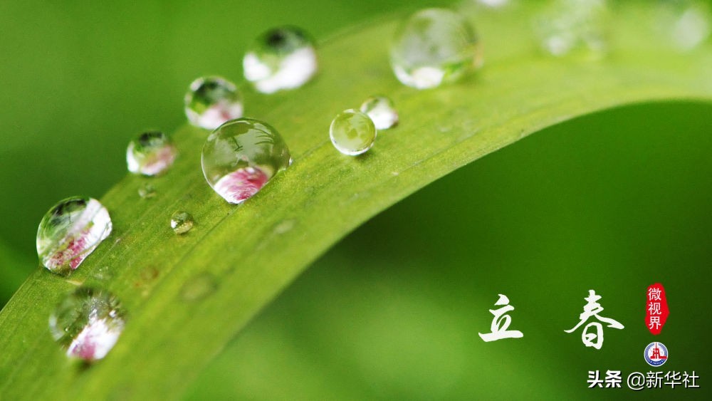 ↑在山东省淄博市高青县吉青种苗培育农场,露珠与小草窃窃私语。新华社发(张维堂 摄)