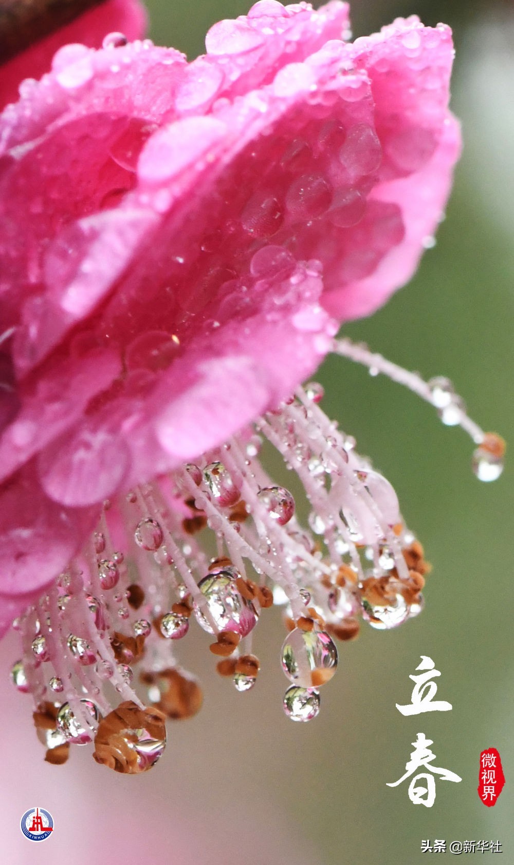 ↑贵州省遵义市余庆县白泥镇下里村,雨后的梅花挂满露珠。新华社发 (穆明飞 摄)