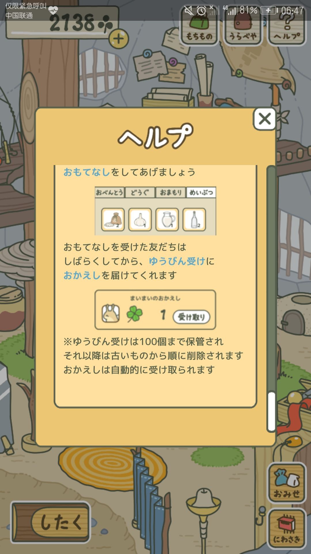 蛙蛙的朋友有时会来拜访,可以用收到的礼物招待它。朋友在接受礼物后会返回送来回礼物品,最多保存100个。邮件里最顶上的券需要网络工具才能领取。