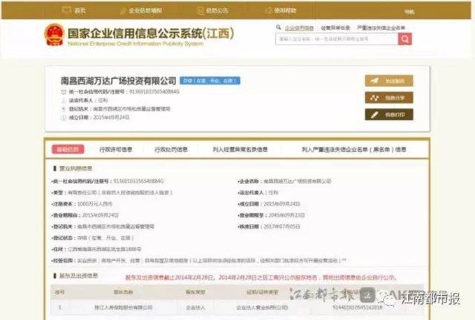 记者还了解到,6月8日,九江万达地产有限公司的实际控股人从“大连万达商业地产股份有限公司”变成“中国民生信托有限公司”;5月27日,抚州万达广场投资有限公司的实际控股人也变成了“中国民生信托有限公司”。