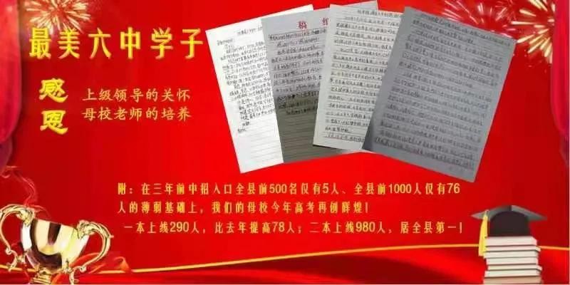 一本上线290人,比去年提高78人;二本上线980人,居全县第一