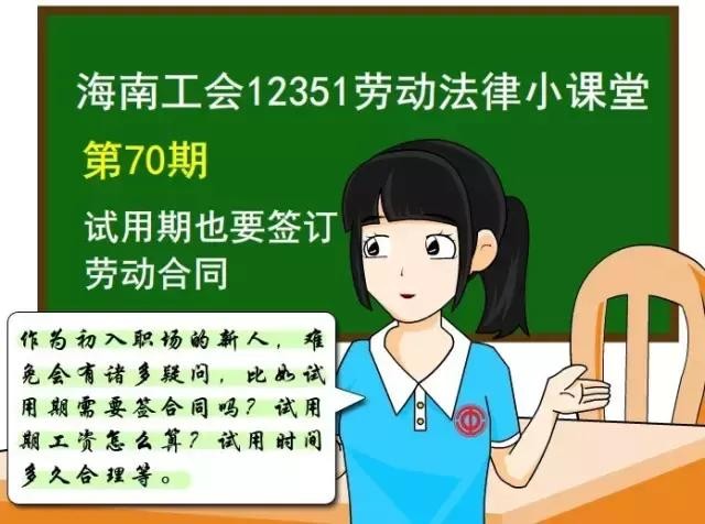 临近毕业,很多大四学生都已落实工作,准备拿到毕业证后去企业报到,开始试用期。但作为初入职场的新人,难免会有诸多疑问,比如试用期需要签合同吗?试用期工资怎么算?试用时间多久合理等。试用期看似“水浅”却埋伏多多,海南工会12351劳动法律小课堂将在此为你“扫盲”试用期的那些事,提醒职场朋友们维护自己的合法权益。
