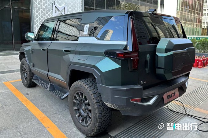 猛士917车长、轴距比仰望U8小,但车宽和车高更具优势,前脸采用棱角分明的梯形中网设计,前大灯采用X型的交叉日间行车灯。车侧配备固定式脚踏板、隐藏式门把手、大尺寸外后视镜和悬浮式车顶造型,车尾采用“小书包”式的外挂备胎。