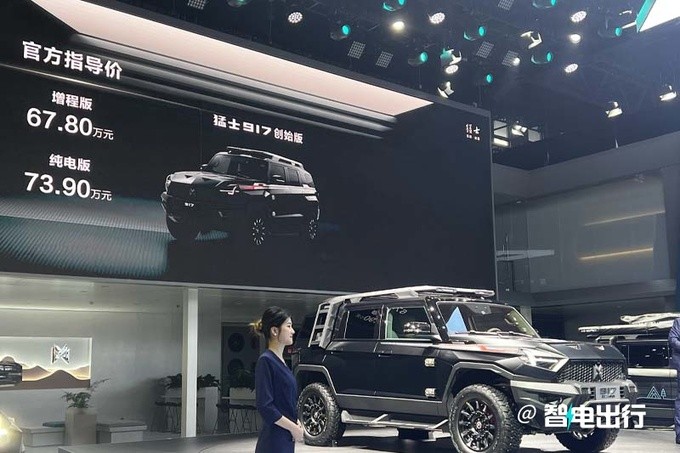 东风汽车旗下猛士科技首款产品——猛士917正式上市,增程版起售价为63.77万元,纯电版起售价为69.77万元,相比预售价(70万起)下调6.23万;另外新车还提供创始版车型,其中增程版售价为67.8万元,纯电版售价为73.9万元。官方表示新车将于9月开启交付。猛士917定位中大型豪华越野车,提供纯电、增程2种动力。