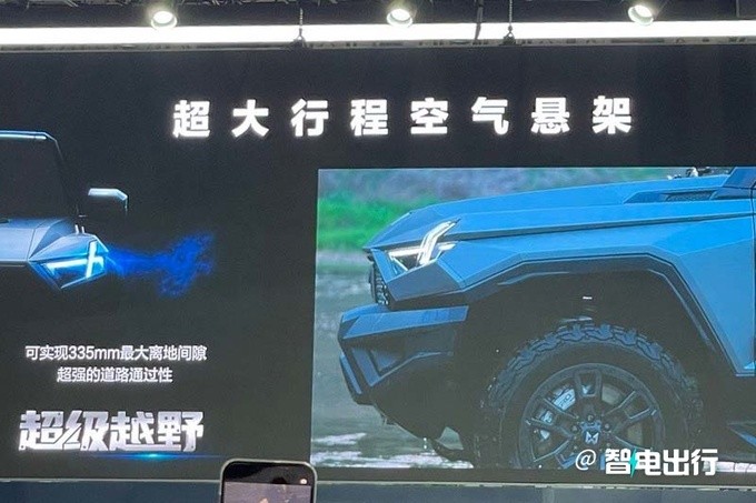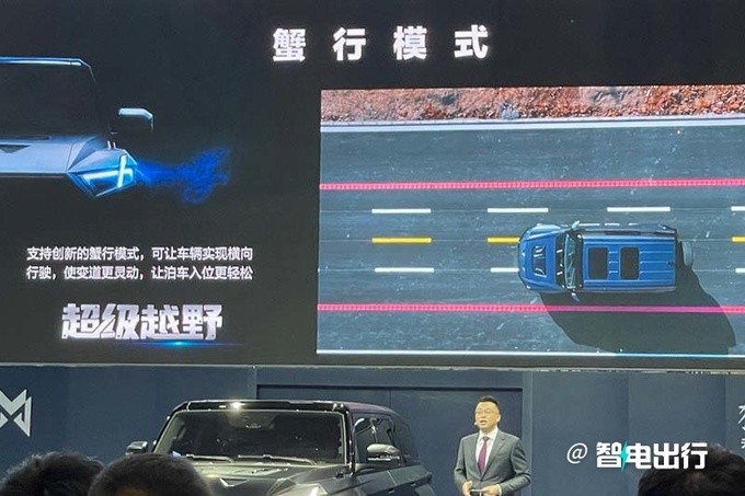 猛士917增程版采用3电机驱动,最大功率600kW,最大扭矩1050N·m,CLTC工况纯电续航200km,综合续航1026km,全系搭载全地形智能解决方案M ATS,拥有雪地、泥地、沙地、岩石等6种全场景越野模式,配备5档可调空气悬挂。同时,猛士917的“蟹行”模式,可让车辆实现横向行驶,使变道更灵动,让泊车入位更轻松。