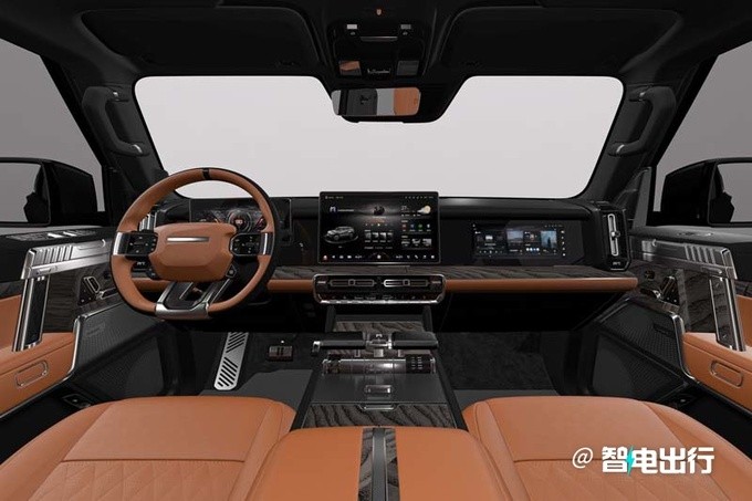 车内提供砂岩橙和月影灰2种配色,配备多功能方向盘、全液晶仪表、悬浮式中控屏、副驾娱乐屏、流媒体后视镜、皮质缝线座椅、实体功能按键和传统空调出风口造型。后排提供小桌板、电动调节座椅、功能控制Pad和应急扶手等配置。