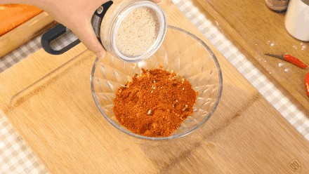 3. 碗中放蒜末、辣椒面、白芝麻,淋上热油,搅拌均匀,油泼辣子就做好了。