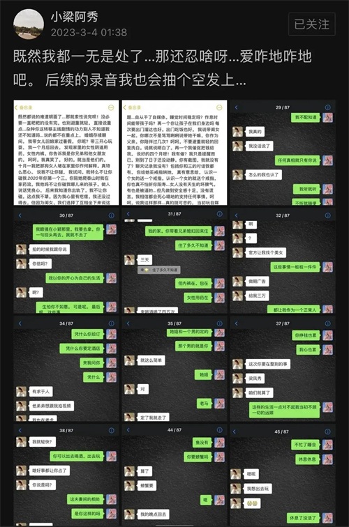 小梁阿秀(马小跳前妻)深夜发文控诉马小跳婚内出轨、找小三,还涉及qj。内容也是相当劲爆。