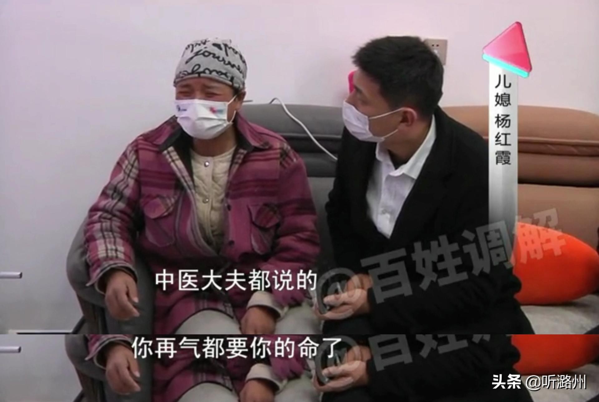 儿媳杨红霞继续说,她去看中医,连医生都说,她再要气下去,都会没命了。