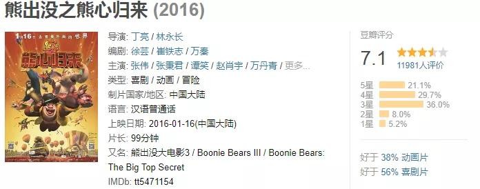 反观熊出没电影,要好很多。
