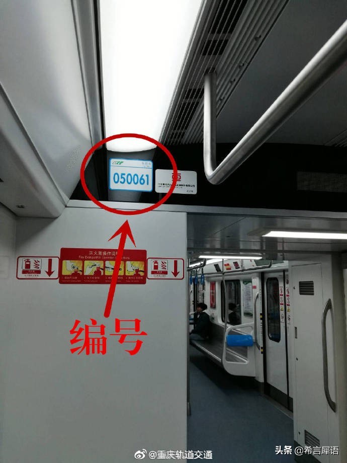 在乘坐轨道交通时,想知道自己所在车厢位置,怎么办?其实每节车厢内外都有车厢编号,相当于车厢的“身份证号”。例如图中这组数字: