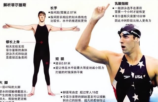 此外,菲尔普斯的身体脂肪比例也非常适合游泳。较低的身体脂肪比例有助于减少水中的阻力,使他能够更加轻松地在水中滑行。这种身体特征的组合,使得菲尔普斯在水中几乎就像是为游泳而生的一样。