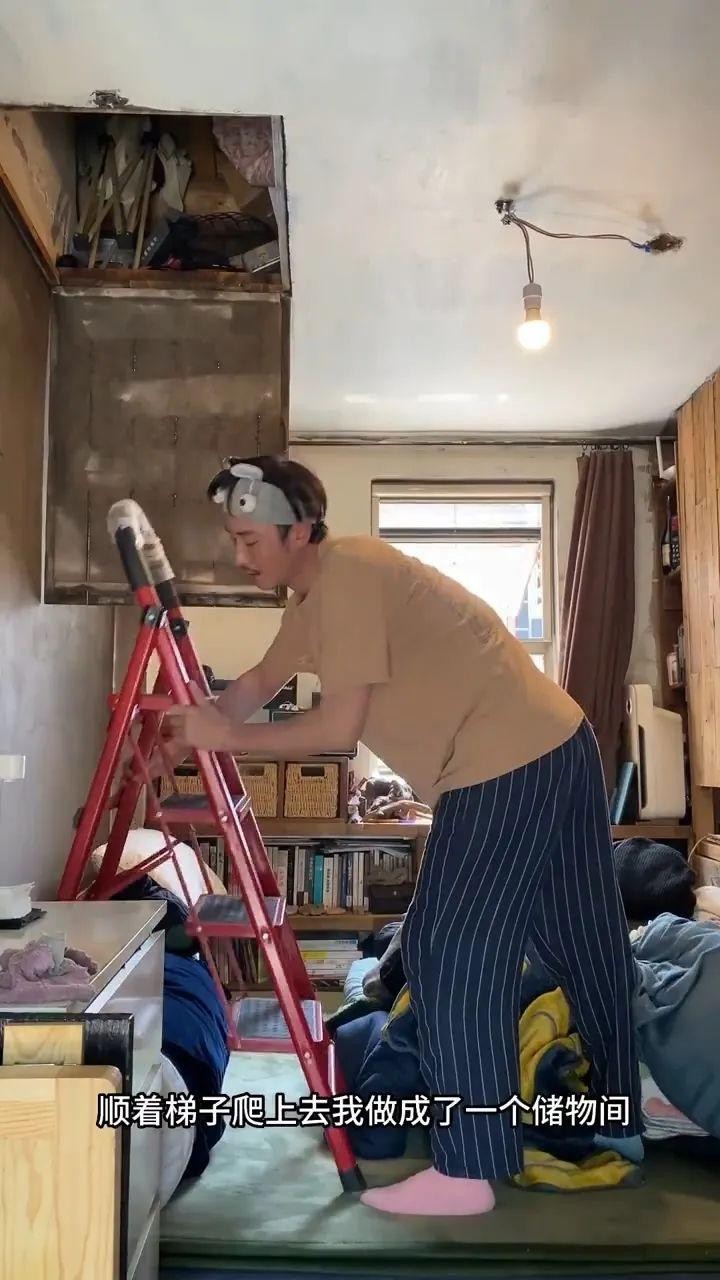 为了节省生活开支,周瑞仅凭一己之力在这个小房子里辟出了一个迷你厨房。灶台下方还压着一台洗衣机,把每一寸空间都利用得极致。