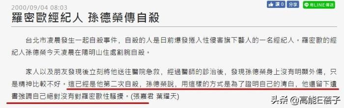 在“四大天王”和“罗密欧”早期,罗志祥与孙德荣的关系还不错。但是当罗密欧与孙荣闹解约时,两人彻底撕破脸。双方因“账户不明”对簿公堂,随后,突然有台媒传出罗志祥控诉遭到孙德荣性骚扰的消息。而孙德荣直接自杀入院以证自己的清白。