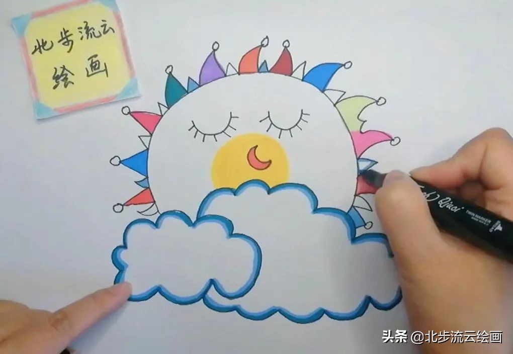 第五步,沿着云朵边缘用蓝色马克笔描边