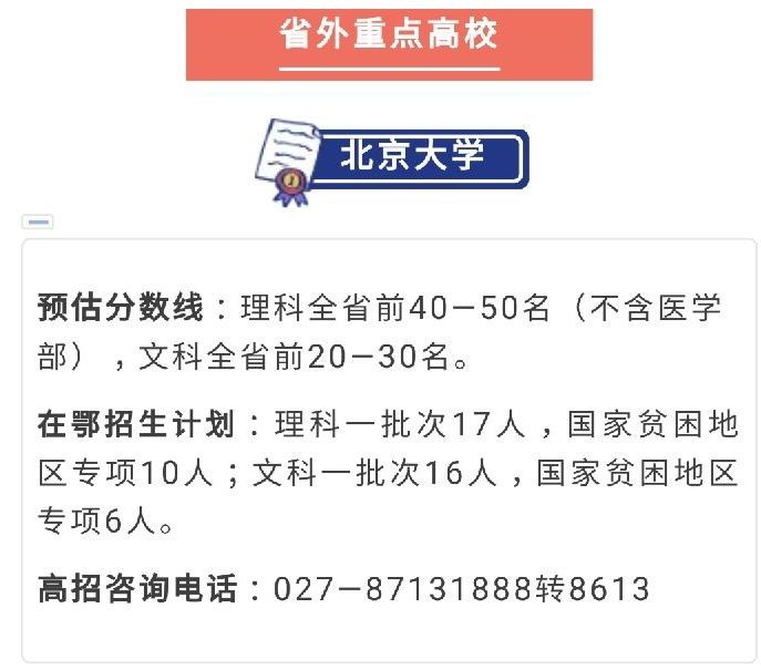 昨日下午,北大、清华、浙大、上海交大等12所省外名校的招生负责人,通过热线电话接受读者咨询,多数高校还根据今年湖北省高考整体情况,预估了各自的录取分数线。