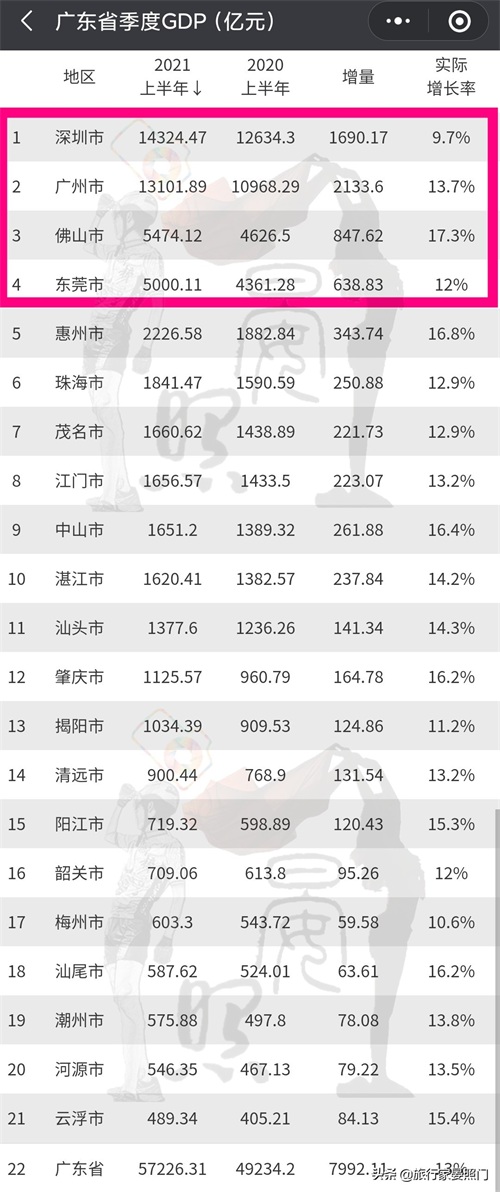 在看完广东所有21座城市2021年上半年GDP数据以及增速后,不难发现,放眼整个广东省,除了深圳、广州、佛山、东莞四座城市能在2021年度破万亿外,其他城市甚至连5000亿都难。这种明显断档对于第一大经济体的广东而言,确实有点匪夷所思。而本文,我们将重点介绍广东省这四座“鹤立鸡群”般的城市,并通过20项核心数据全面对比分析,广州、深圳两大超级顶尖城市之间的强强对话,谁才是广东第一城?谁又是继广州、深圳两大一线城市之后的广东第三城?以及这四座城市各大核心指标的绝对实力以及相互差距?……就让我们带着这一系列疑问正式开启本文的话题。